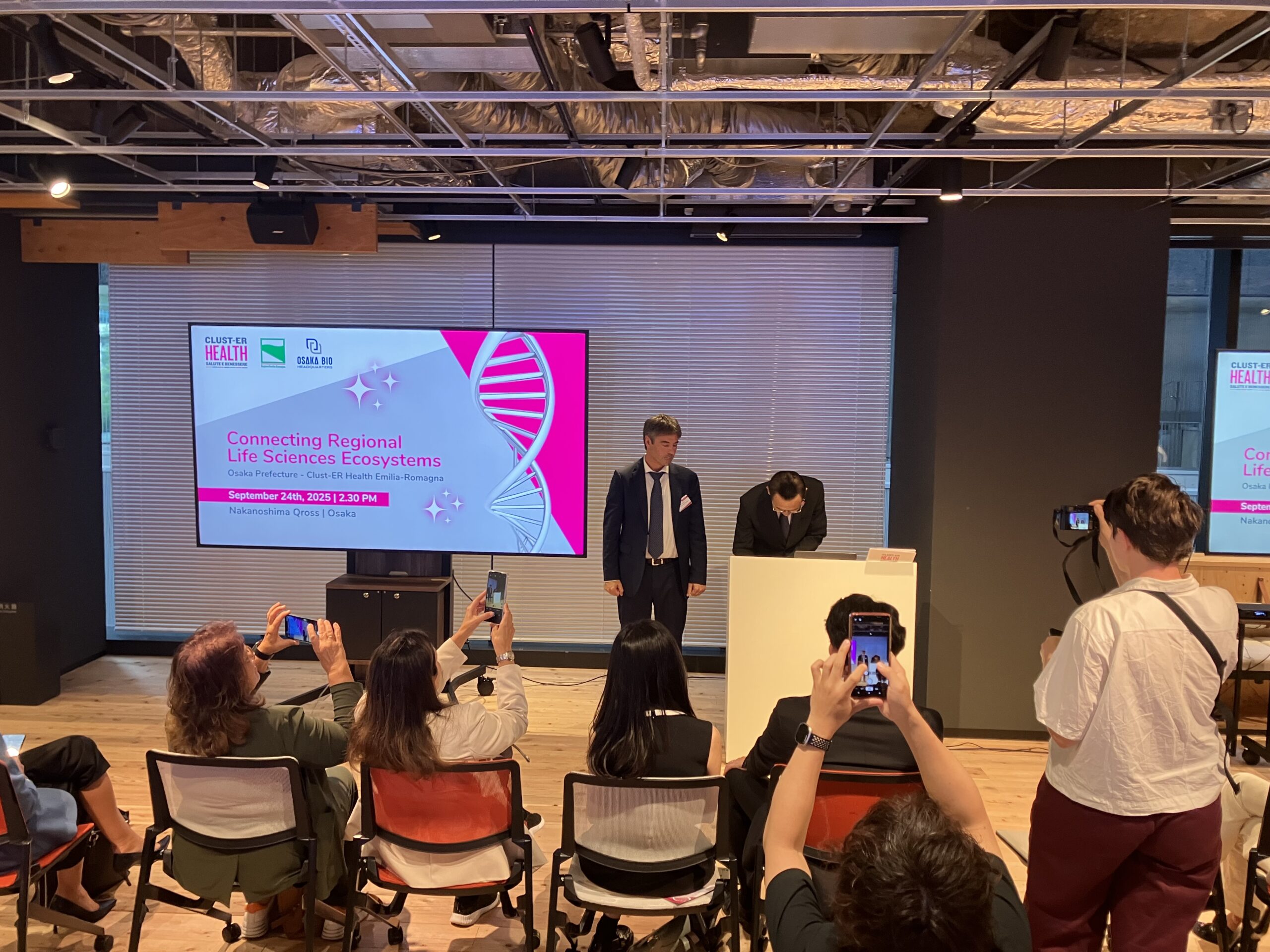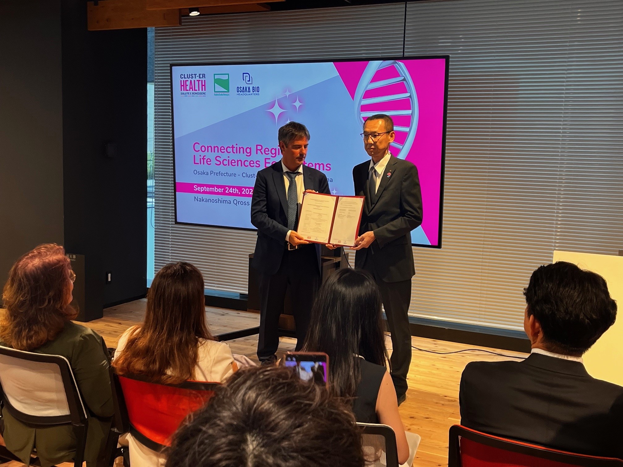 Osaka Bio Headquarters has signed a memorandum of understanding with Clust-ER HEALTH, a cluster in the life sciences sector in Emilia-Romagna, Italy, with the aim of promoting collaboration between companies and research institutes in the life sciences sector between the two regions.